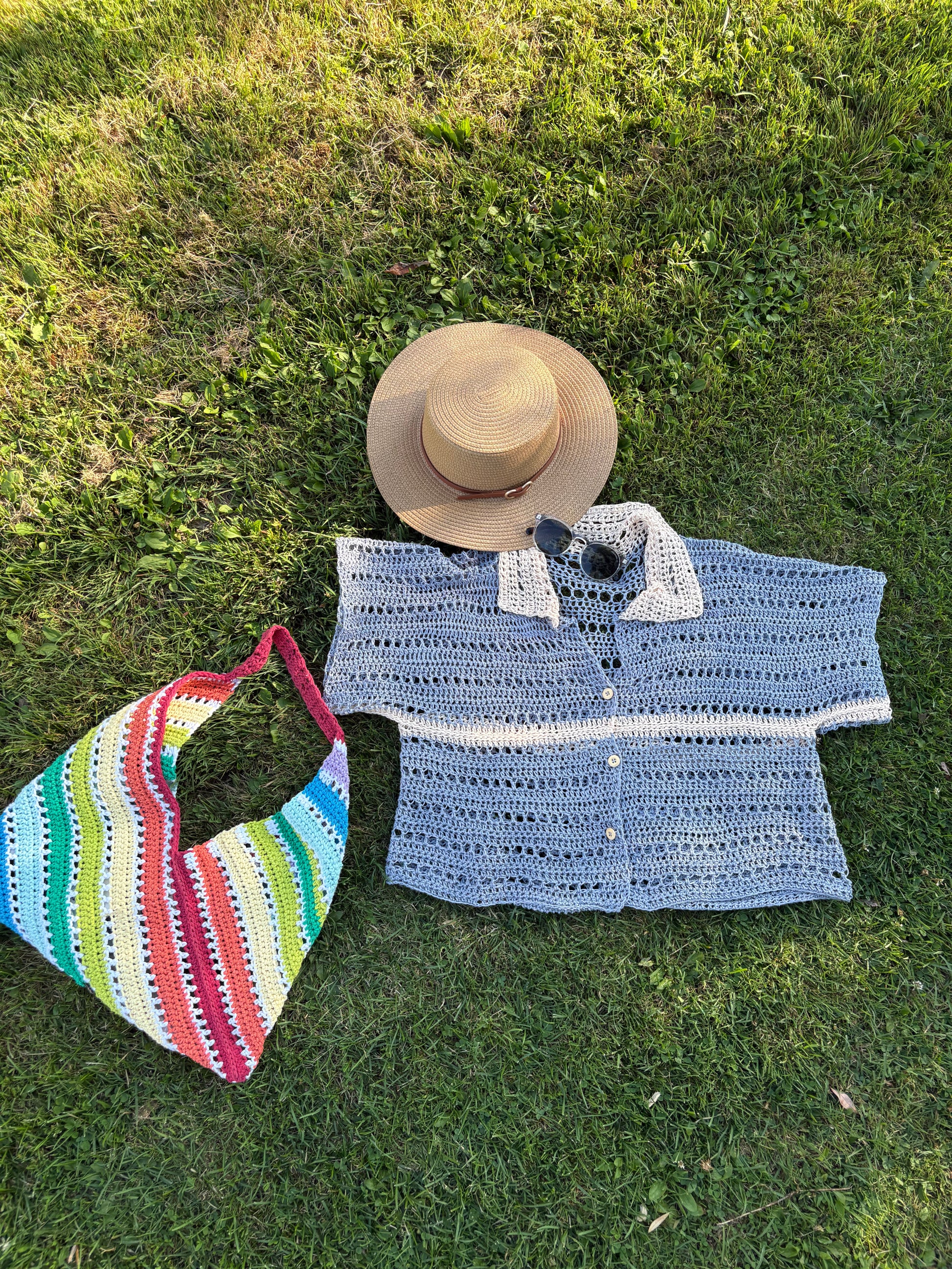 Introducing the Marie BOG Shirt — a breezy, stylish crochet shirt made in one piece using the clever BOG construction technique. Designed with a clean button-up front, delicate collar, and a light, airy fabric, this piece is perfect for layering or wearing on its own during warmer days.