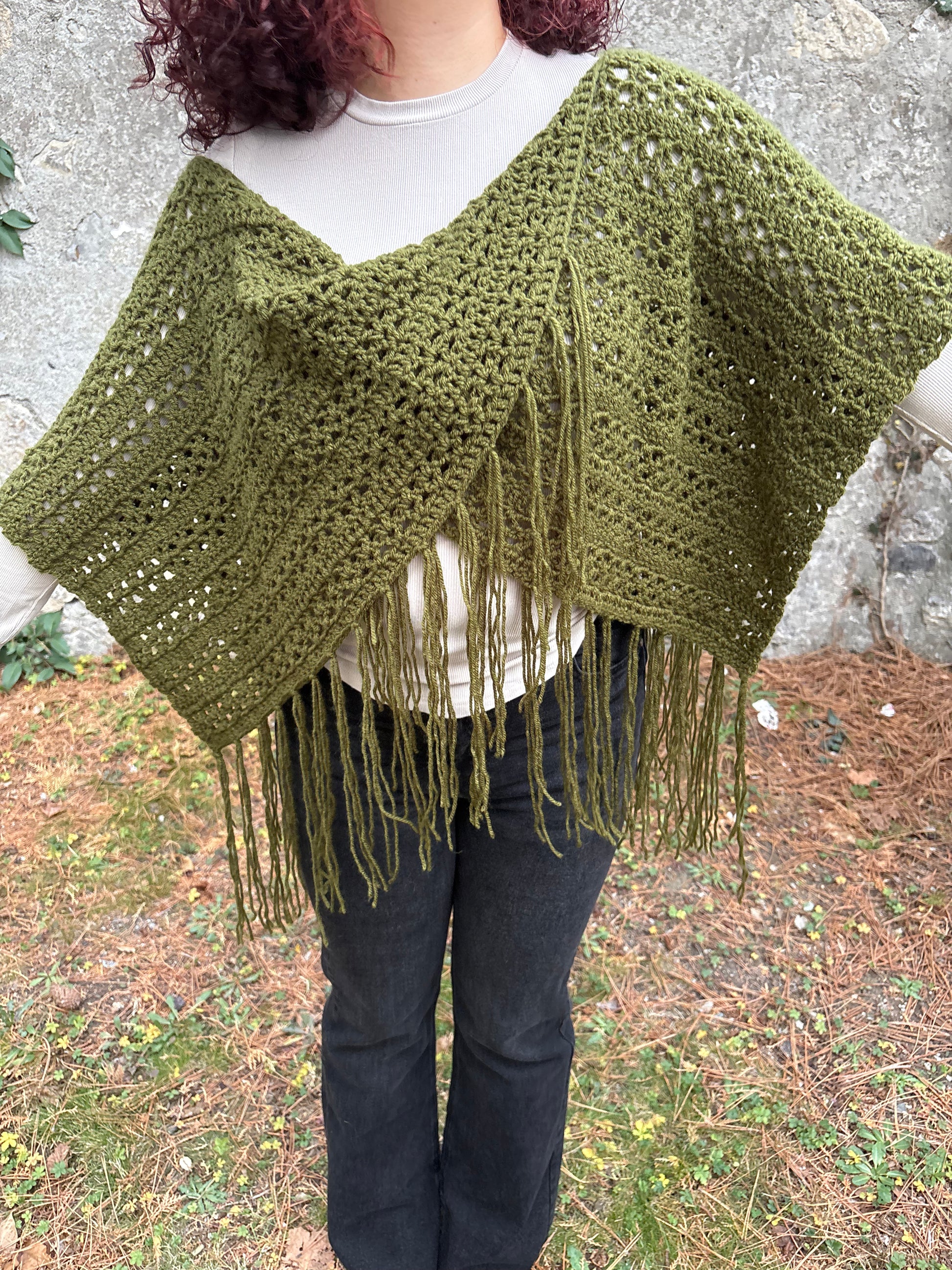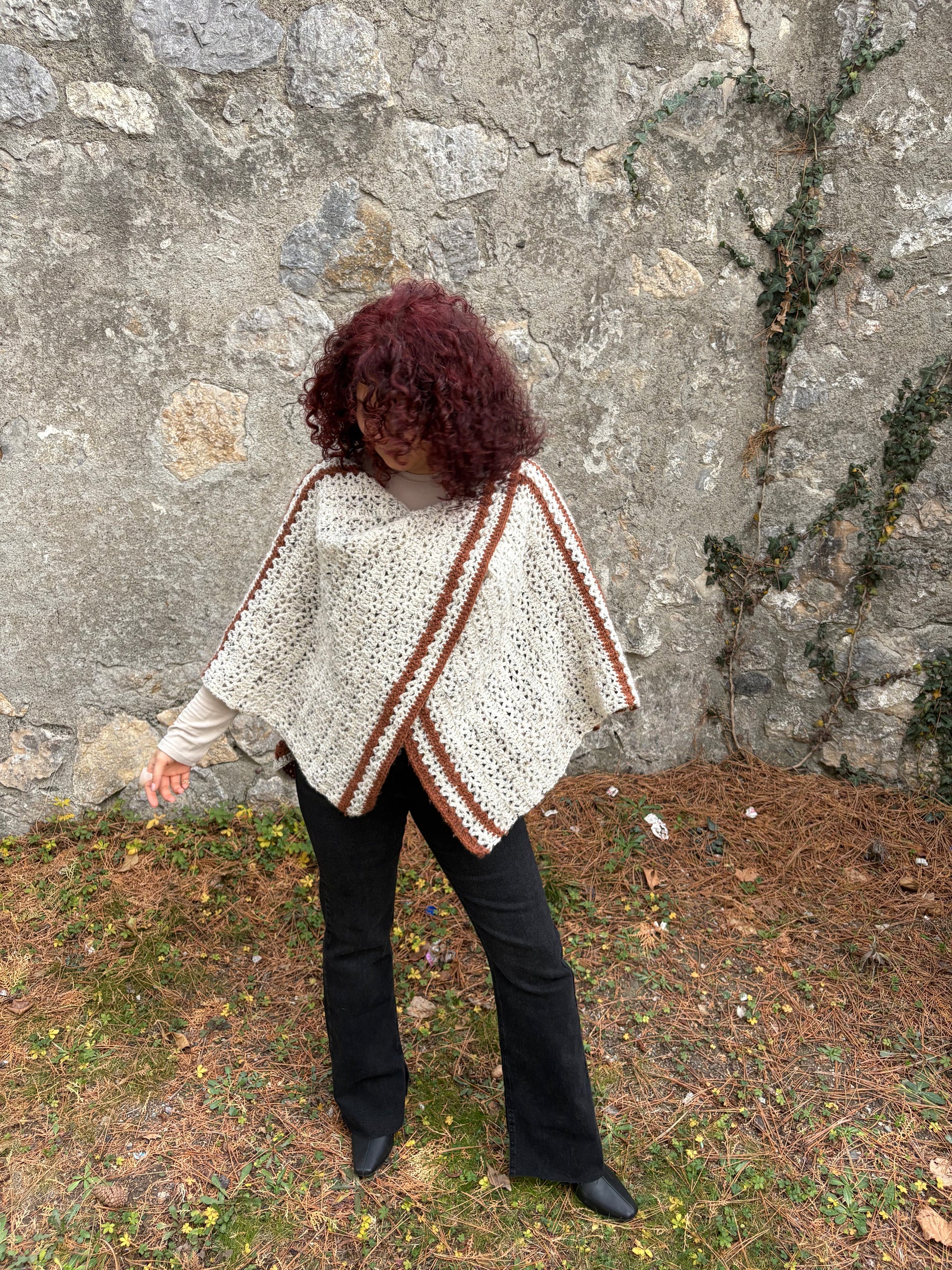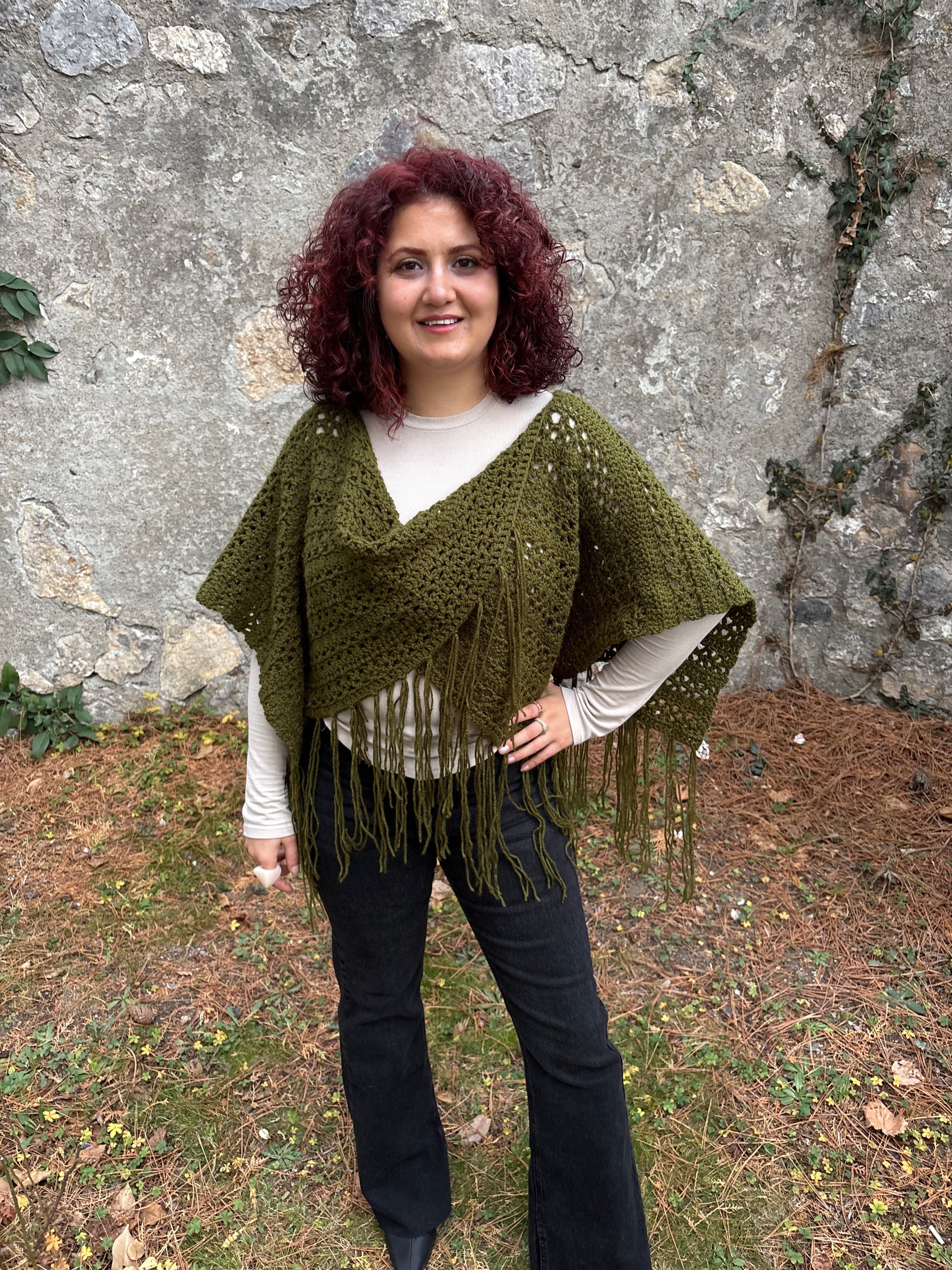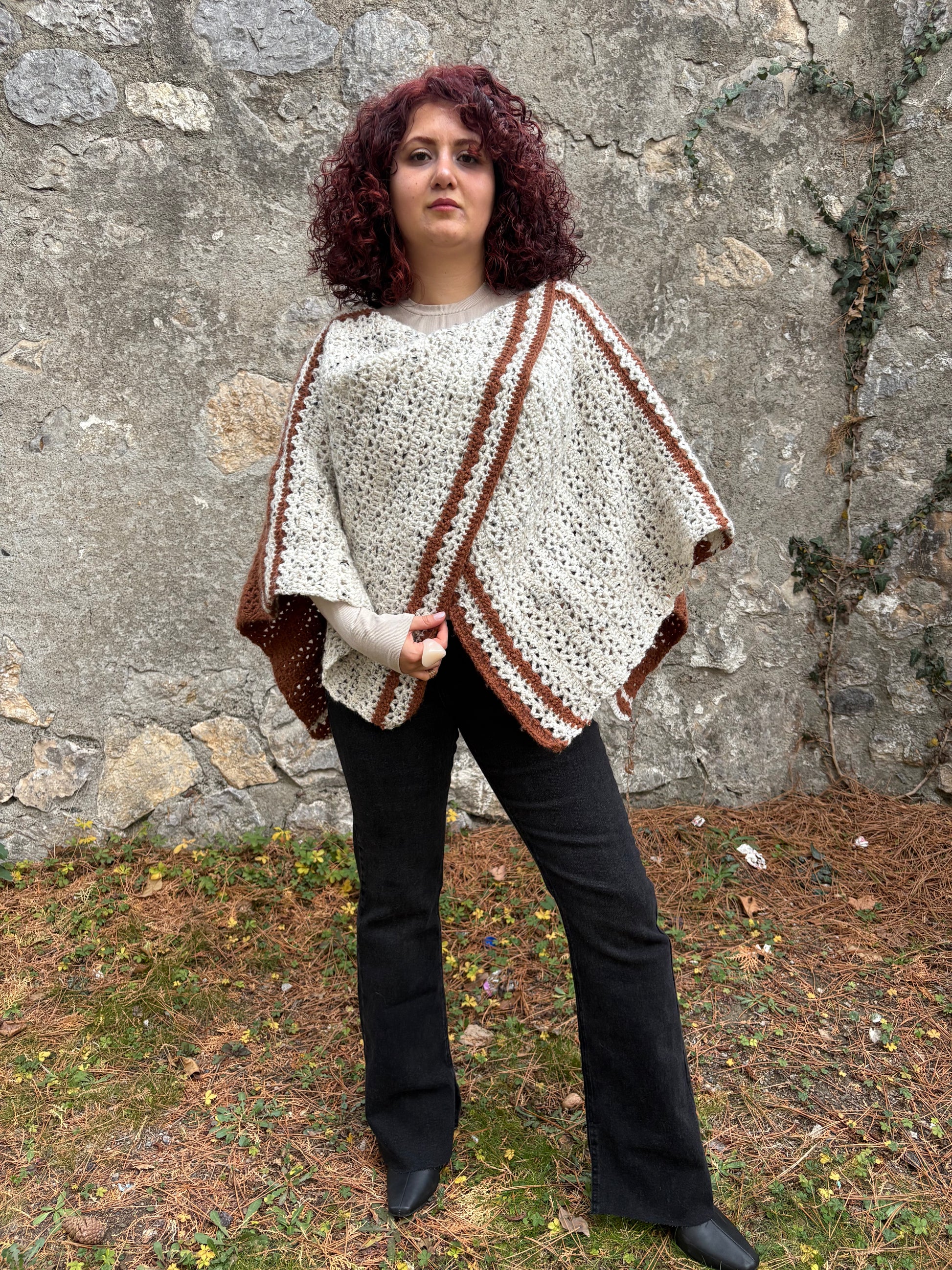 The Mobius Poncho features a clever twisted construction that gives it the look of a Mobius strip when worn. This unique shape allows the poncho to drape beautifully and be worn double-sided, offering two different looks in one piece. Made with simple, repetitive stitches, the pattern is easy and enjoyable to crochet, yet the finished result feels polished and stylish—perfect for everyday wear. You can finish it with tassels for a bold, playful touch or leave them off for a clean, modern look; both options are fully included in the pattern.