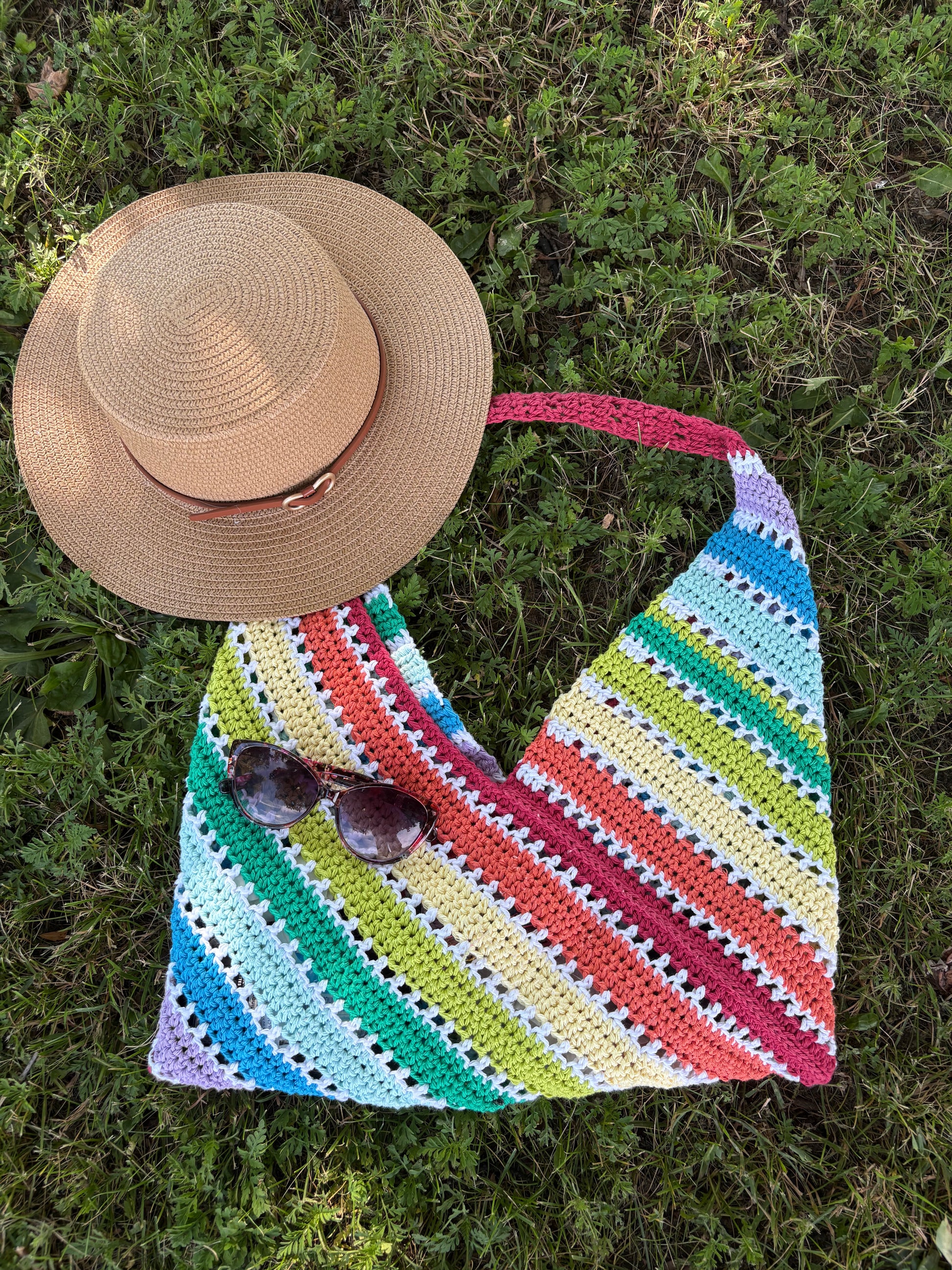 Ada Bag: A bold, foldable rainbow bag made in just one rectangular piece! Designed for minimal sewing and maximum color impact, this project is perfect for confident beginners who want to create something stylish and satisfying.