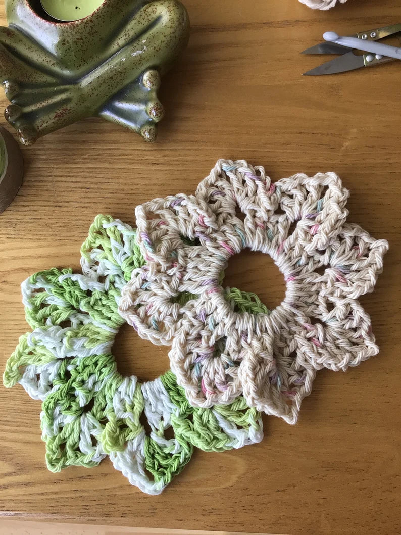 The Flowy Scrunchie: Simple, quick and easy crochet scrunchie pattern. Looks like a flower.